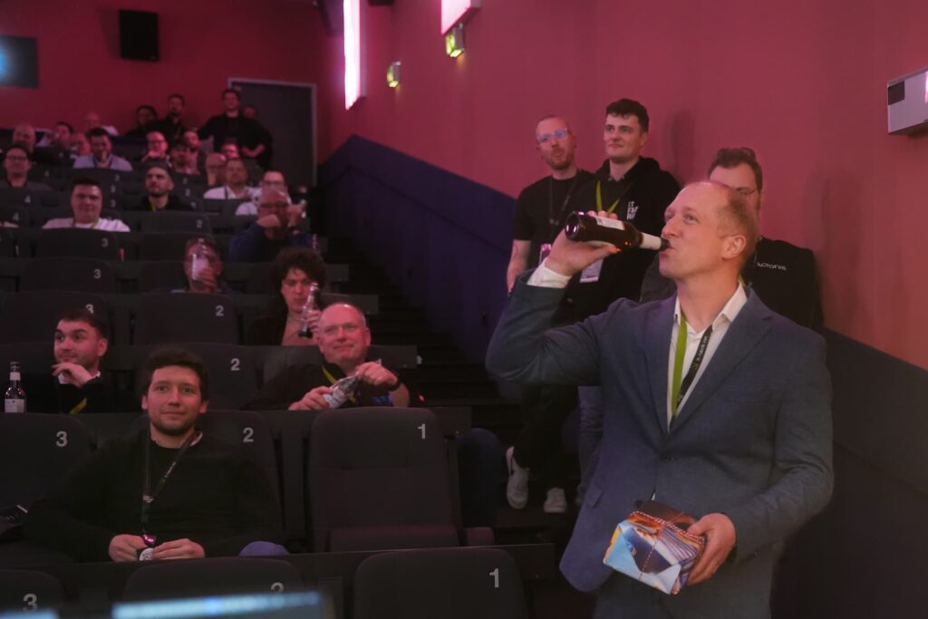 Ein kurzer Rückblick auf die Anfänge der IT Fabrik zeigte, welche Werte damals festgelegt wurden und wie sie bis heute im Unternehmen gelebt werden. Bilder und persönliche Worte auf der Kinoleinwand gaben dabei einen Einblick in die Entwicklung. Für eine kleine Danksagung an Sven haben wir ohne sein Wissen einen Teams-Call organisiert, damit sich alle dazuschalten konnten, um an diesem besonderen Moment dabei zu sein.